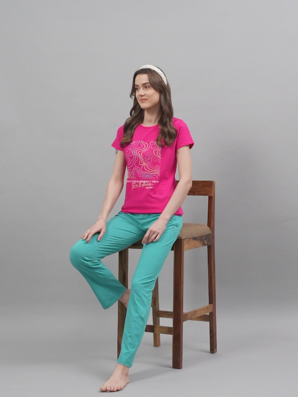 Lady's top-r/n 2 pc set h/s, 34