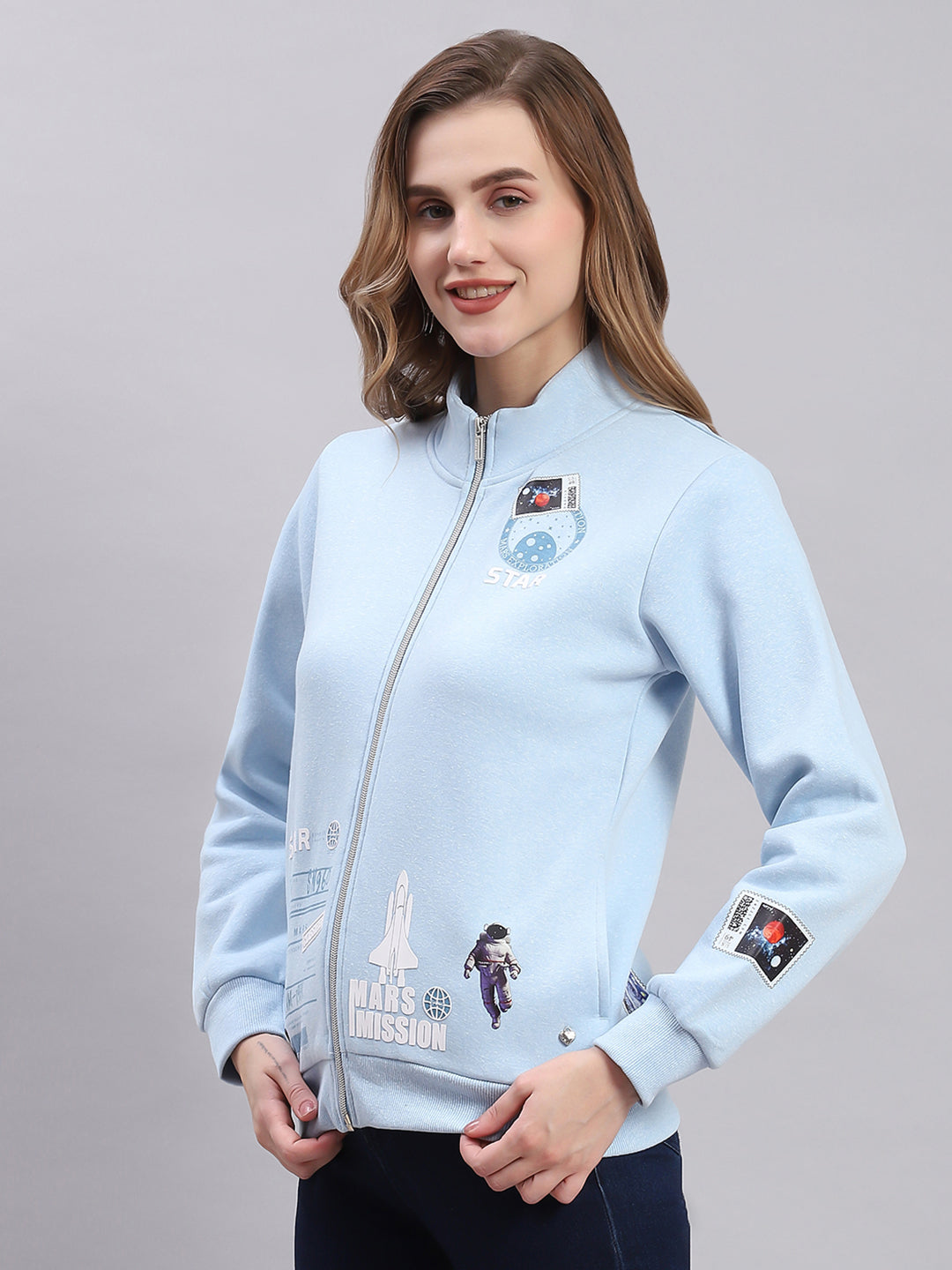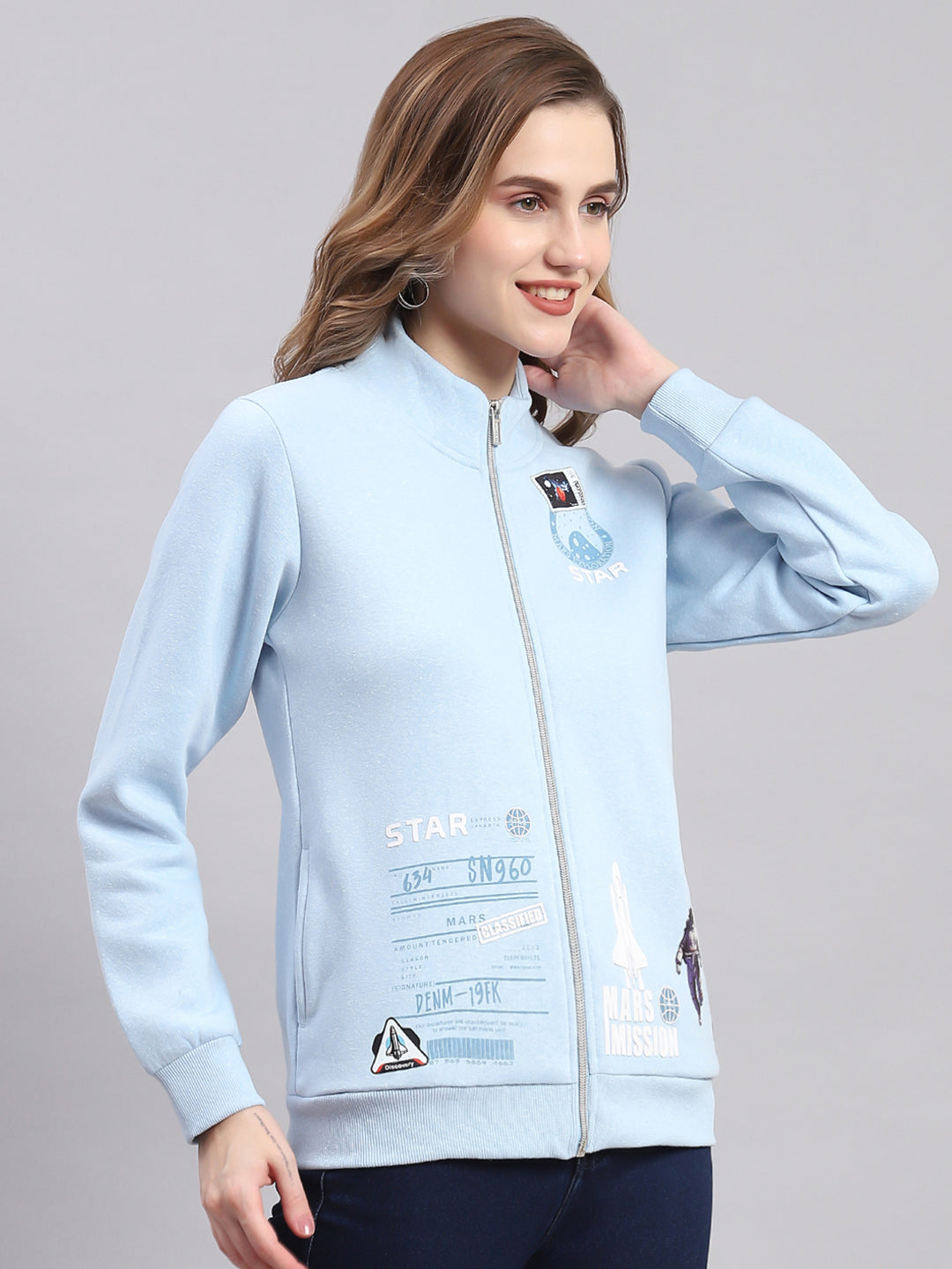 Lady's sweat shirt-fn-zip-f/s, 34