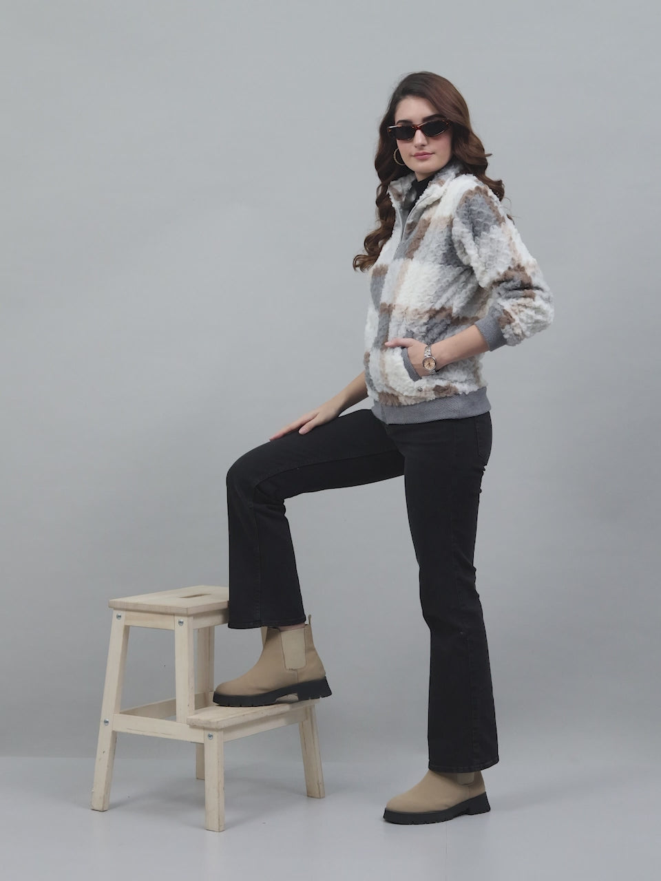 Lady's Sweat Shirt-Fn-Zip-F/S